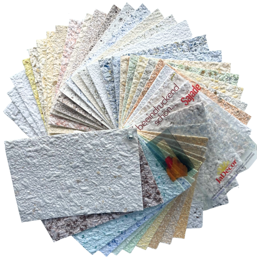 Entdecken Sie die faszinierende Welt von JaDecor’s SaJade Baumwollputz mit unserer exklusiven Musterkollektion. Wir bieten Ihnen die Möglichkeit, über 100 Originalmuster für 4 Wochen kostenlos auszuleihen, damit Sie sich einen realistischen Eindruck von unserem einzigartigen Baumwollputz verschaffen können.